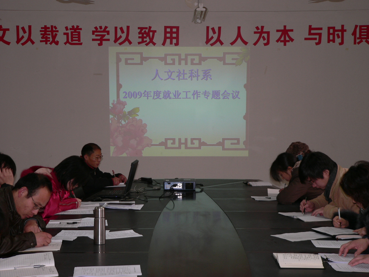 3月4日下午,人文社科系在系会议室召开了2009年系部就业工作会,吕亚君主任、杨晓东书记出席会议,系部全体教师参加了会议。会议由杨晓东书记主持。