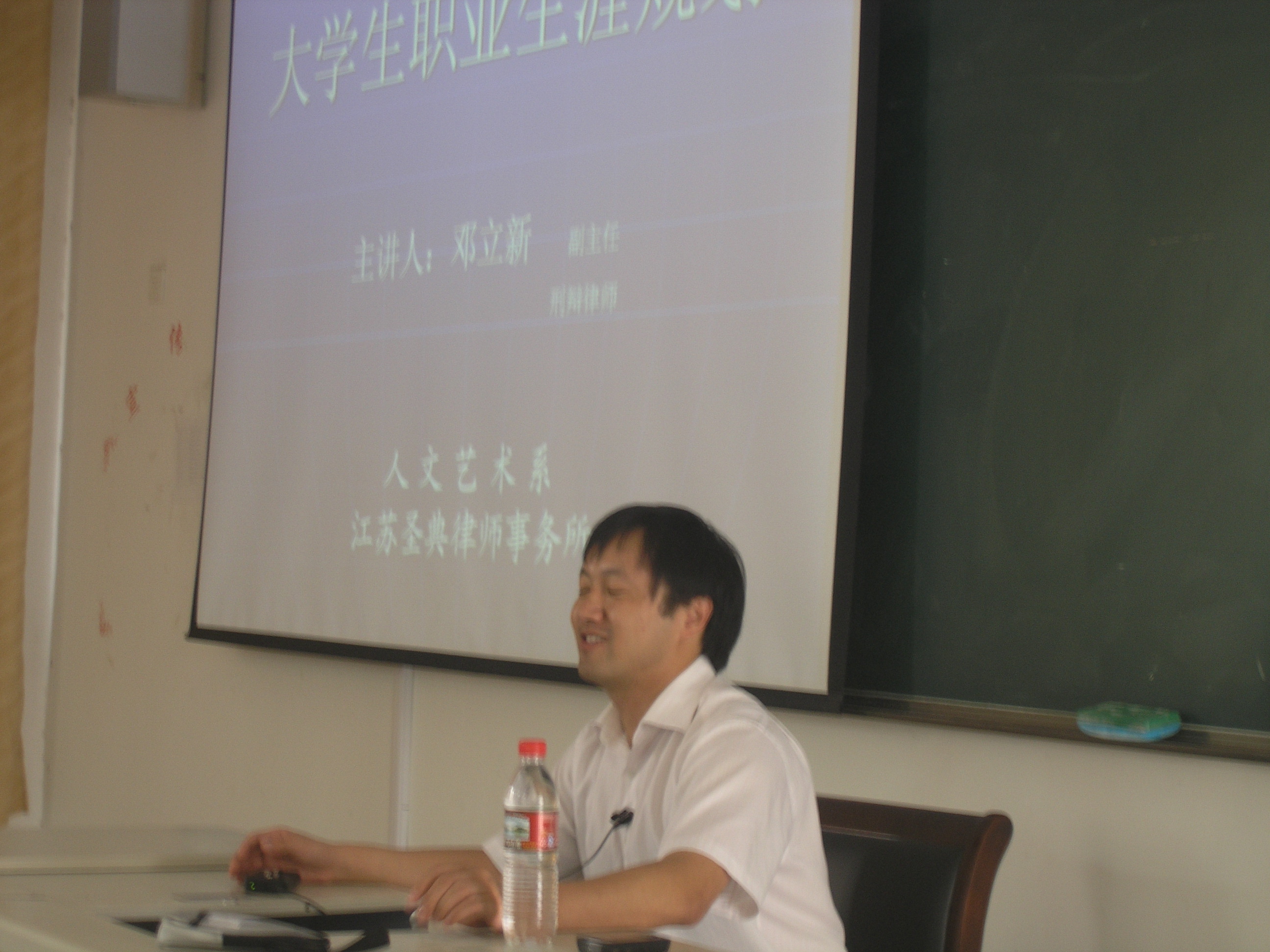 邓律师通过介绍自身的发展经历,告诉学生“小顺靠智,大顺靠德”,要求学生明白学会做人的重要性;通过如何进行合理的学习定位、职业定位、阶段定位三个方向的介绍,引导学生对大学三年进行科学合理的定位;最后邓律师告诫同学们面对竞争压力,要从现在开始就培养自己终生学习的能力,养成积极的心态,做一个有思想的人。邓律师的报告内容贴近学生,语言富含哲理动。短短一个半小时的报告,受到了同学们的欢迎,,赢得了阵阵掌声。