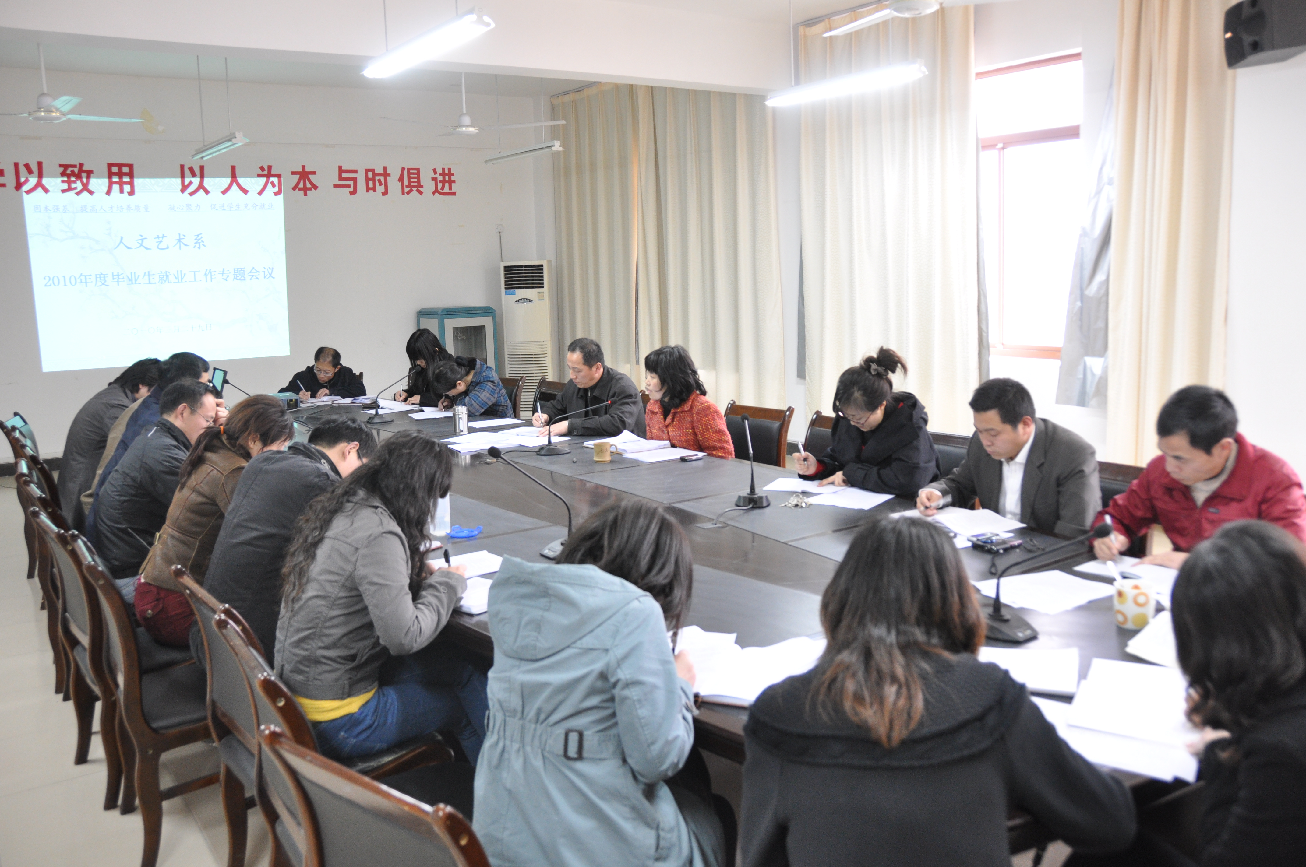 3月29日下午,人文艺术系在系会议室召开了2010年系部就业工作会,系部全体教师参加了会议。会议由杨晓东书记主持,吕亚君主任作了总结讲话。