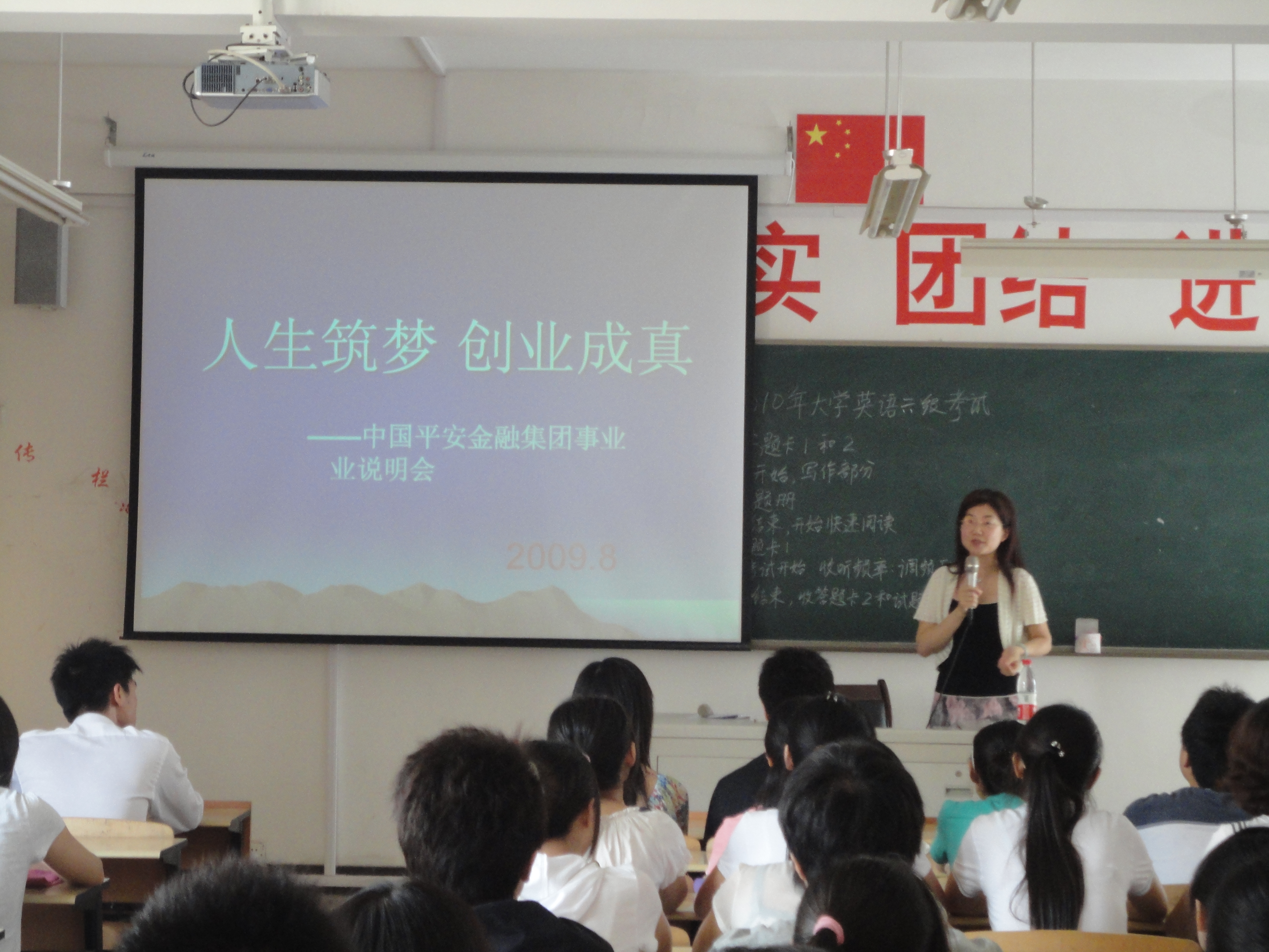 刘主任向同学们介绍了社会就业形势、中国平安的企业文化,并就暑期实习岗位和就业岗位的情况及相关要求作了说明,同时鼓励同学们勇于挑战。我系2010届毕业生陈稳在该公司工作,业绩突出,他与同学们分享了自己的工作体会。说明会结束后,部分有志于保险工作的同学现场填写了报名表。