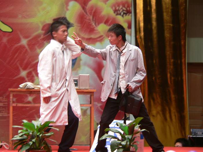 晚会结束后,高院长以及参加晚会的部门领导上台与演员一一握手并合影留念。