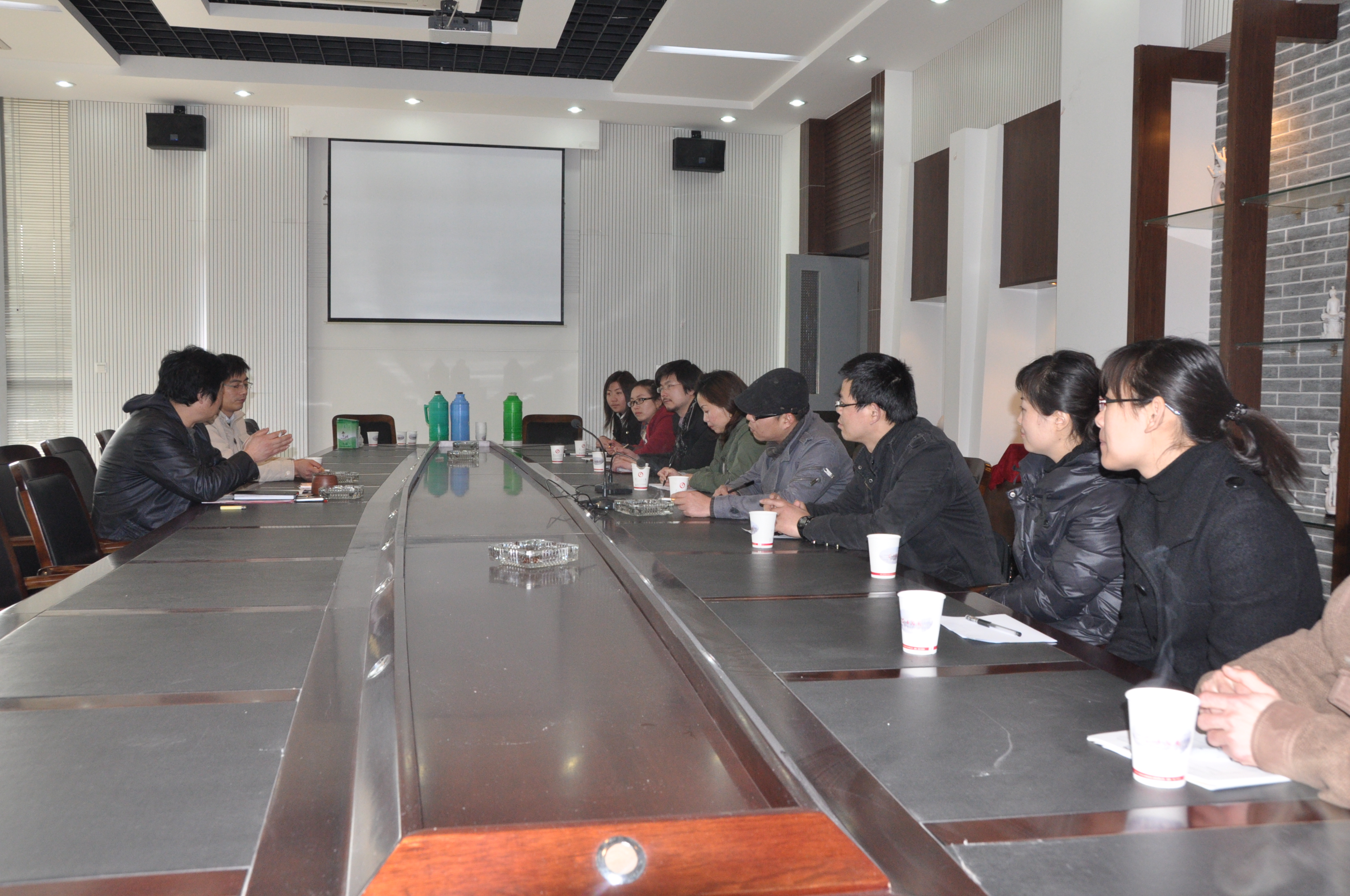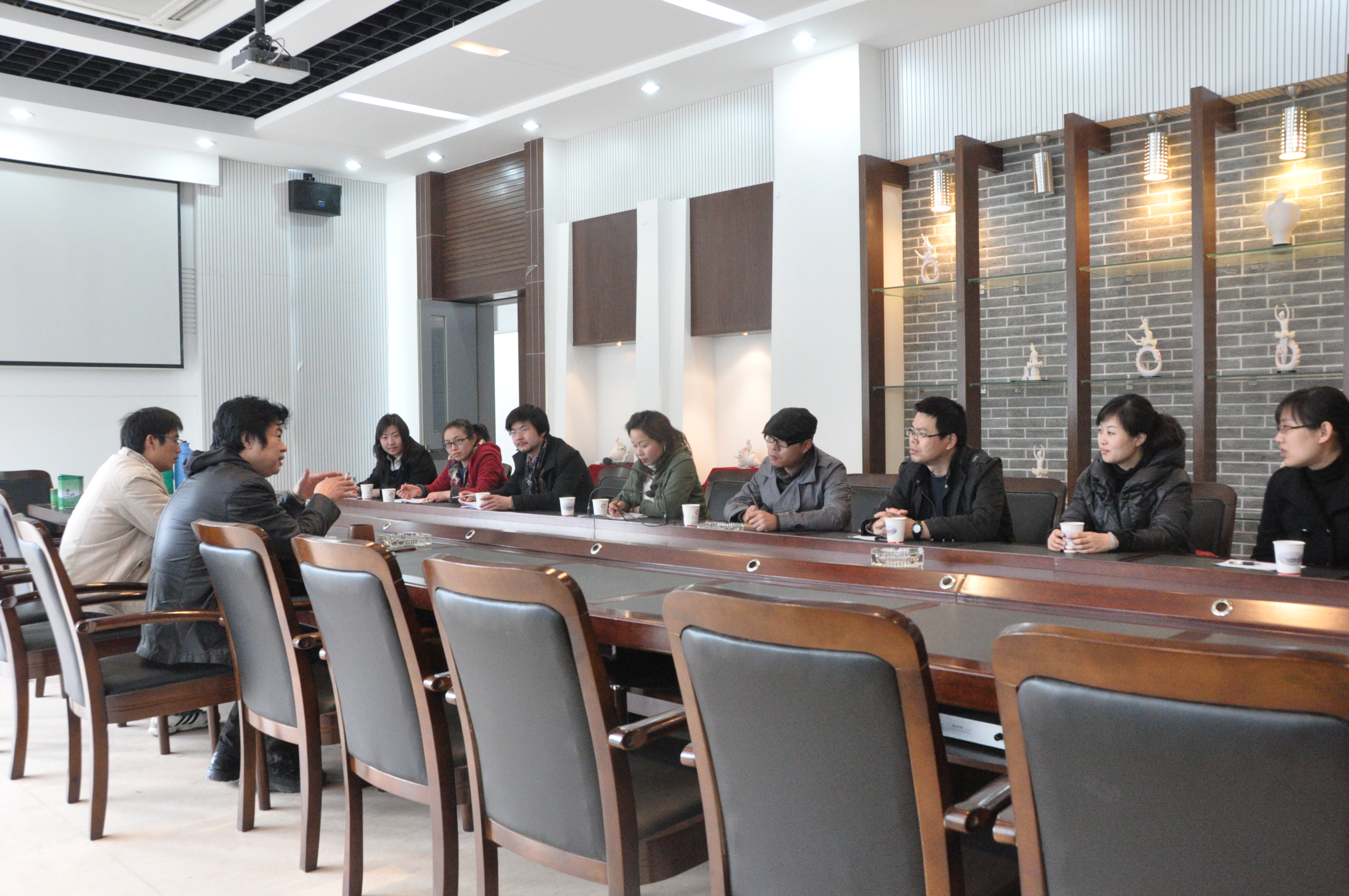 在调研过程中,同行教师参观了艺术与设计学院美术馆、明清家具展览馆、民间工艺展览馆、师生优秀作品展示墙、专业实训室等建设成果。张玉春副院长介绍了艺术与设计学院的基本情况,并分析了“十二五”期间艺术设计专业所面临的挑战和机遇。在听取了他们的先进经验和发展规划后,双方就艺术设计专业的专业设置、课程教学、实训室建设、校企合作等核心问题,展开了热烈研讨。