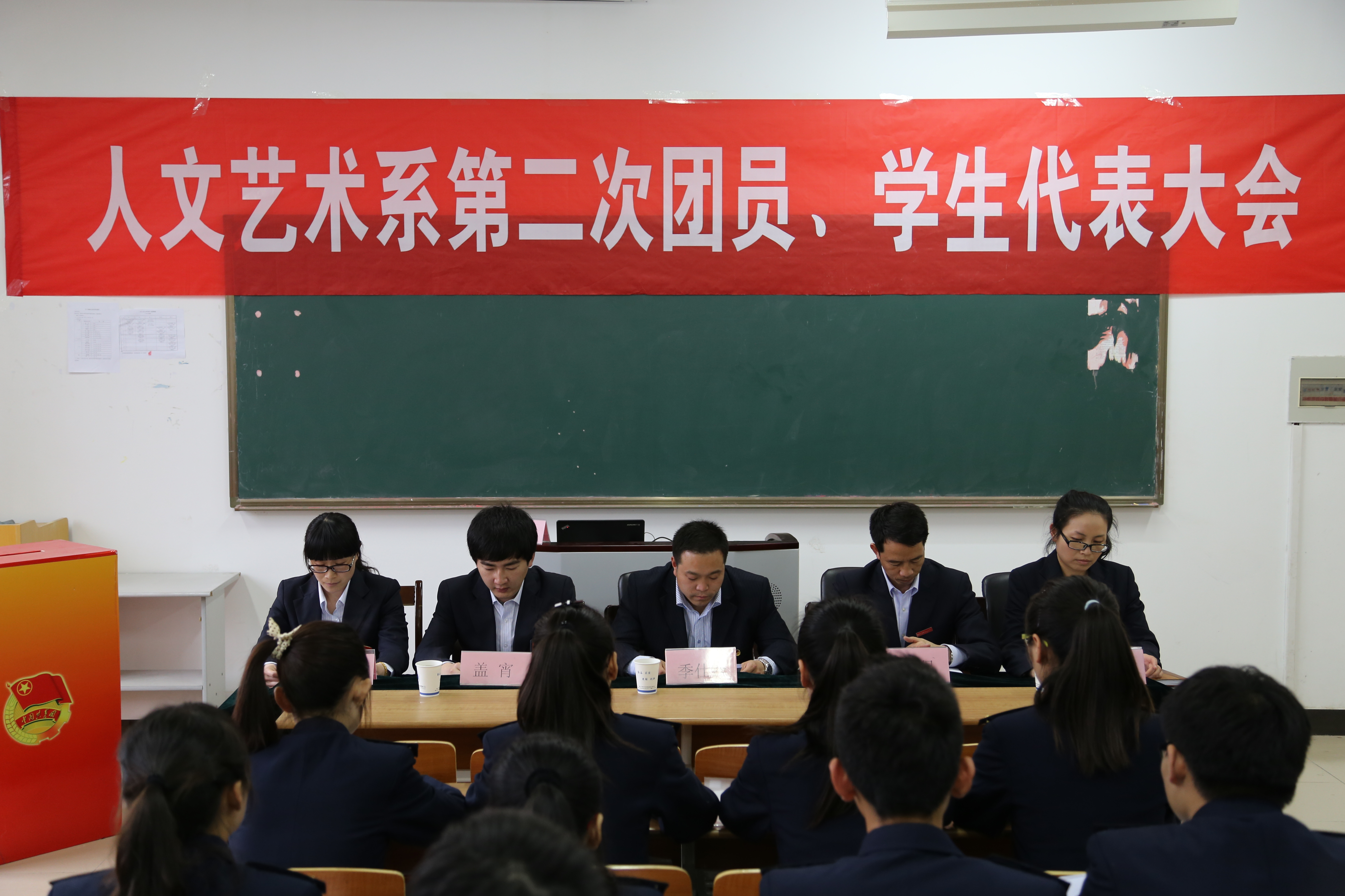 会议在庄严的国歌中开幕,季仕锋书记为此次大会致辞,他代表校团委对我系两代会的召开表示祝贺,对过去几年我系团学工作取得的成绩给予肯定,并对我系共青团工作和广大团员青年提出殷切希望。系党总支刘阳书记作了重要讲话。会议听取并审议了团总支书记所做的题为《深化思想引领强化实践育人 为奋力开创人文艺术系共青团工作的崭新局面贡献青春和力量》的共青团工作报告,就五年来我系团总支工作进行了回顾。我系团总支始终坚持以“科学发展观”重要思想为指导,紧紧围绕学校团委和系党总支的中心工作,认真贯彻以发展为主题、育人为主线、创新为动力的工作思路,团结和带领全系团员青年,开拓创新,各项工作都取得了鼓舞人心的成绩。报告展望了未来几年我系共青团工作的新任务,并借此机向长期以来指导、关心和支持系部共青团工作的各级领导,向为共青团工作辛勤付出的团员、青年们表示衷心的感谢。会议听取并审议了学生会主席所作的学生会工作报告,选举产生了新一届人文艺术系团总支委员。