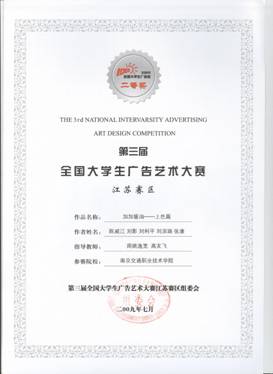 学生积极参加各类竞赛,获得大学生广告艺术大赛国家级一等奖,省级二等奖等。