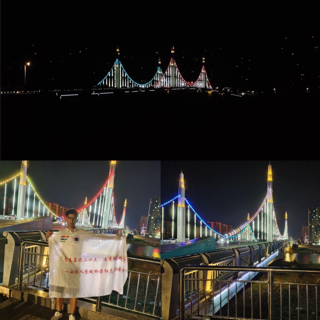 探寻完新沂河大桥后,团队成员任新龙乘着夜幕来到沭阳的金水桥。金水桥工程是县政府年度为民办实事项目之一,总投资7600余万元。该工程主要包括主桥、辅桥以及道路接线等。主桥横跨金水河,全长80米,辅桥两侧各50米,皆为连续梁结构;引桥两侧各32米,为2×16米跨空心板梁结构。桥梁总宽45米,桥梁设计荷载为城市A级。极大改善南部新城区交通条件,切实解决群众出行难题。