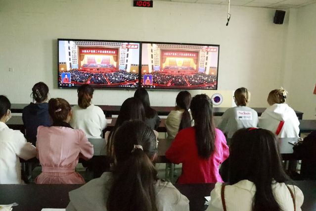 2022年10月16日上午10点,中国共产党第二十次全国代表大会在北京人民大会堂隆重开幕,我系党总支第一党支部组织全体入党积极分子、发展对象及预备党员,在明德楼二楼教室集中收看了中国共产党第二十次全国代表大会直播盛况,以隆重的仪式迎接大会胜利召开。