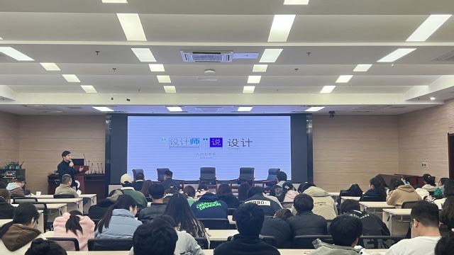 2022年11月22日,我系邀请南京百视维文化传播有限公司总经理李刚、南京冠景雕塑艺术有限公司总经理汪文斌和南京鼎盛昌木工机械有限公司总经理孙伟在图书馆B203为学生们开展“设计师说设计”校企合作专题讲座,校企双方就行业现状和发展前景、融入江苏视觉传播圈的路径、江苏的设计发展趋势、江苏文艺创意产业在中国所处的地位、如何应对职场中的甲方等方面展开了分享和交流,活动由系副主任宋寿剑和公共艺术教研室主任高友飞主持。