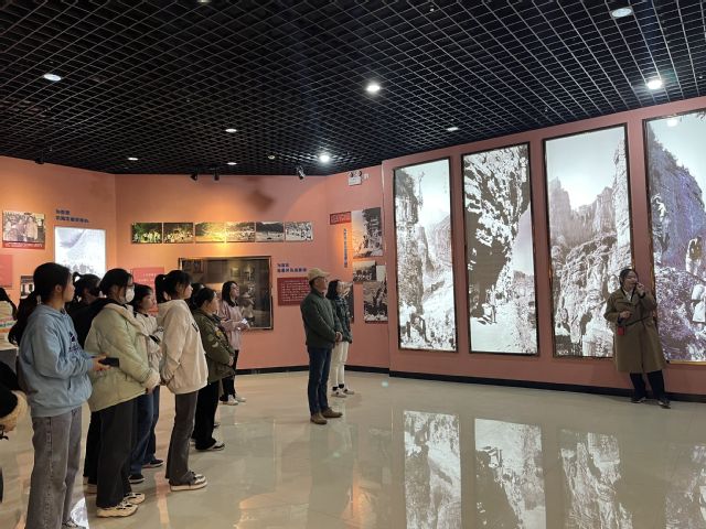 整个纪念馆以“扁担精神”的发展历程为主线,分为六大部分:“一根扁担创家业”、“一分一厘细打算”、“一心为着山里人”、“一心一意谋发展”、“扁担精神在林州”、“亲切关怀”,为人们展现了上世纪后半叶波澜壮阔的为民精神。从馆内的影像资料中可以看到,通往村庄的道路堪称陆地版的“天堑”,一张张触目惊心的图片不禁令人心生敬畏,而一位位负重百斤货物攀爬的先辈更是让入党积极分子们敬佩。