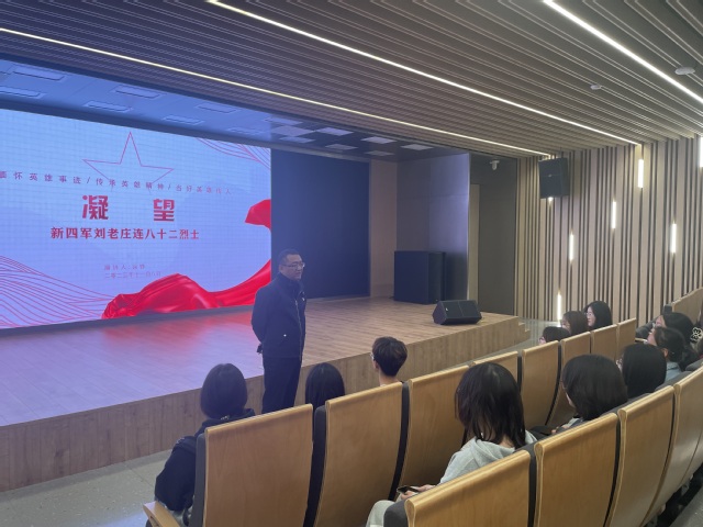 师生们首先在报告厅参加了“凝望——新四军刘老庄连八十二烈士”公益播讲会开播仪式,观看了情景剧《凝望——新四军刘老庄八十二烈士》,了解发生在刘老庄的军民故事以及刘老庄的前世今生。观影结束后,党支部举行了第43期入党积极分子开班仪式,党总支书记张晓焱同志对入党积极分子进行开班动员,对他们提出新的要求和期待。随后大家集中参观美术作品展。