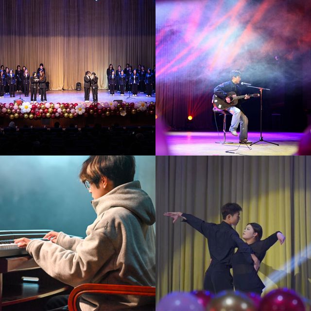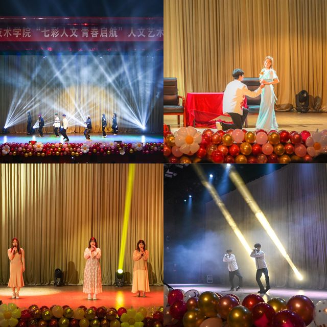 弦歌新起,流光溢彩,耀眼的舞台属于南交七彩人。晚会以气势磅礴的龙狮鼓舞作为开场,展现了传统文化的魅力,点燃了全场观众的热情。歌声里、律动间,青年锐气正盛,青春朝气蓬勃。本次晚会涵盖了歌舞、话剧、乐器弹奏、书法等节目类型。