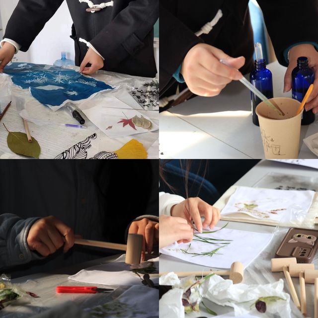 在“三八”国际妇女节来临之际,我系名班主任工作室依托“书记项目--传统文化进社区”开展了一场别开生面的“把春天敲进袋里 探索植物之美”活动,通过植物敲拓染和蓝晒印染的方式,探索植物之美,与自然共舞!