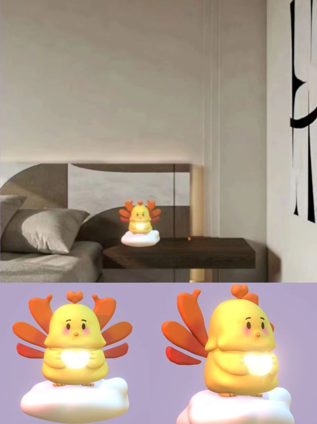 (作品以江小宁的形象展开设计,结合五育润心,沐光同行的主题,小夜灯能在黑暗中带来光明,江小宁站在云头上手捧爱心的外观设计,很符合心理健康的定位,手捧一颗赤诚之心,心中有光,自万丈光芒。227022112王莉莉)