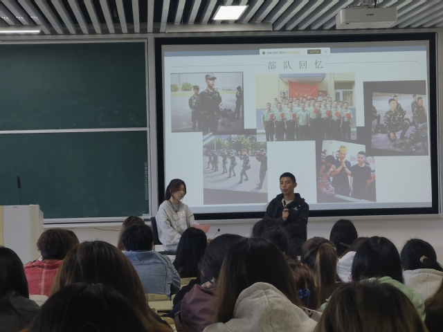 2024年10月29日,我系成功举办了一场征兵宣传活动,邀请退役士兵陈昊东向大一新生分享军旅生涯,普及征兵政策,旨在增强学生对征兵政策的认识并激发他们的参军热情。