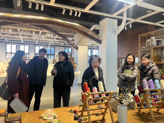 随后,王主任一行实地考察了工艺美术学院的教学设施和教学环境,参观了工艺美术学院近年来在技能竞赛中获奖的学生作品及校企合作开发的文创产品等艺术作品,详细了解了将传统工艺与现代技术相结合的实训室与展厅建设、设备配置及管理模式。