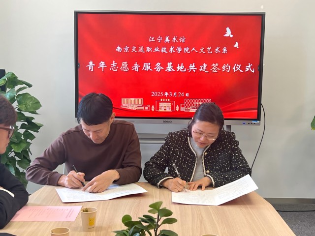 最后,双方代表共同签署了《青年志愿者服务基地共建协议》和《大学生劳动教育基地共建协议》,标志着我系与江宁美术馆的合作迈上新台阶。