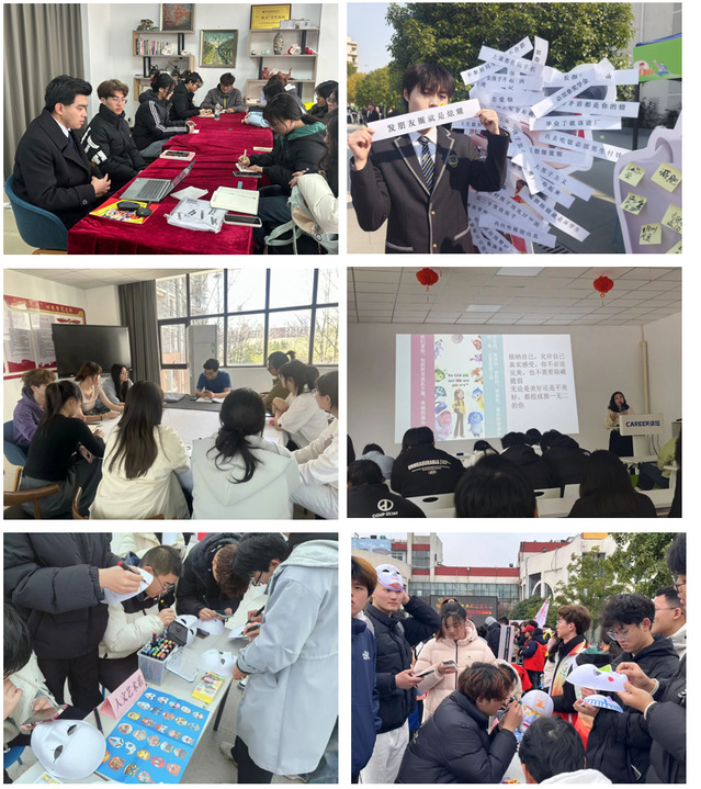 二、心灵润泽-成长赋能工程。以“3・20咱爱您”心理健康主题为契机,构建“理论+实践”双维教育模式。邀请七彩人文功能型党支部心理委员、校心理健康中心教师杨姝婧开展“解锁心态密码”主题讲座,通过影像分析与案例教学,系统阐释心态转化路径。创新开展“心灵面具疗愈”“标签退退退”等特色活动,吸引全校百余人参与。组建心理互助小组,组织朋辈谈心6次,实现心理关怀“零距离”。