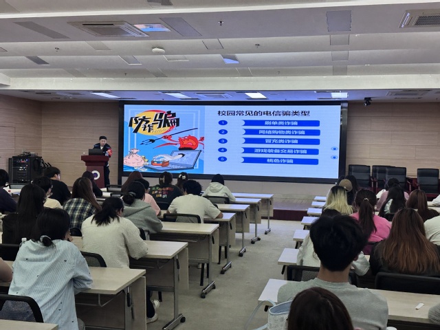 4月27日,我系在图书馆B203开展“警惕诈骗陷阱,护航青春成长”反诈宣传讲座。本次活动邀请科学园派出所驻校资深反诈民警张传磊警官主讲,120余名学生到场参与。