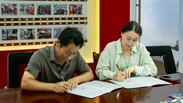 在朱家岗村党群服务中心,双方党支部举行了隆重的共建签约仪式。校地双方围绕“资源共享、优势互补、共同发展”的原则将在党建共建、文化惠民、艺术下乡、志愿服务等方面开展深度合作。艺术设计学院将充分发挥专业优势,定期组织师生赴村开展艺术下乡活动,助力乡村文化振兴;朱家岗村将作为学院实践教育基地,为师生提供红色文化教育、乡村建设调研等实践平台。