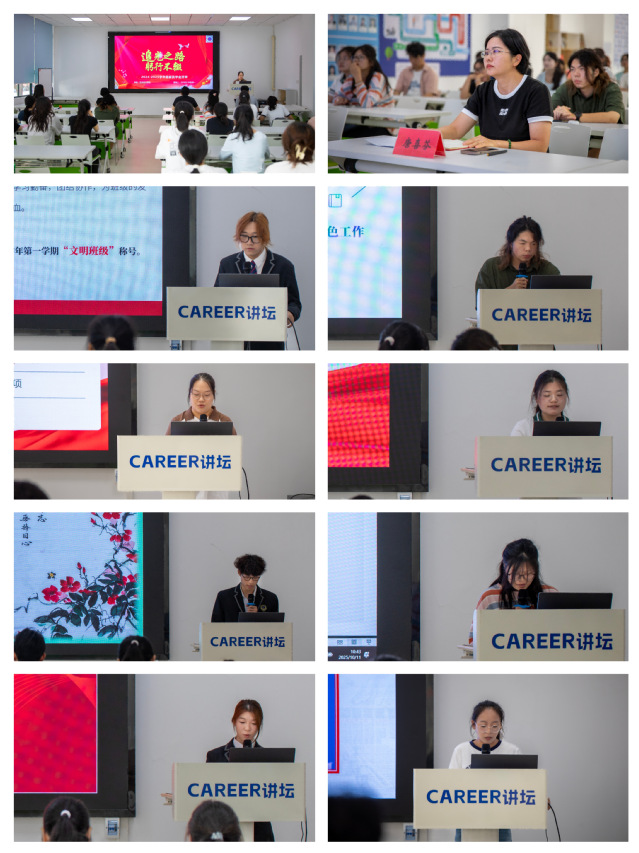 答辩会上,候选个人与班集体代表围绕学业成绩、专业创新、社会实践与班级建设等方面作了陈述和展示,用“青春答卷”精彩诠释了“身边的榜样”、集体的力量,展现了艺术设计学院学子踔厉奋发的时代风采。